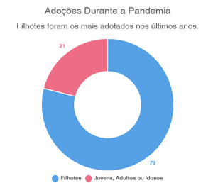 Os dados são da Comissão de Animais de Companhia (Comac) e do Sindicato Nacional da Indústria de Produtos Para Saúde Animal (Sindan). Eles apontam também que 23% dos atuais tutores tiveram o seu primeiro animal de estimação durante a crise sanitária. Os cães ainda ocupam a primeira posição entre os pets do Brasil, estando em 44% dos lares. Entretanto, durante a Pandemia os gatos foram mais adotados. Em torno de 55% de novos pets escolhidos são gatos, nos últimos anos. Além disso, nessa pesquisa foi possível observar um crescimento de 27% nos gastos com serviços e produtos veterinários.